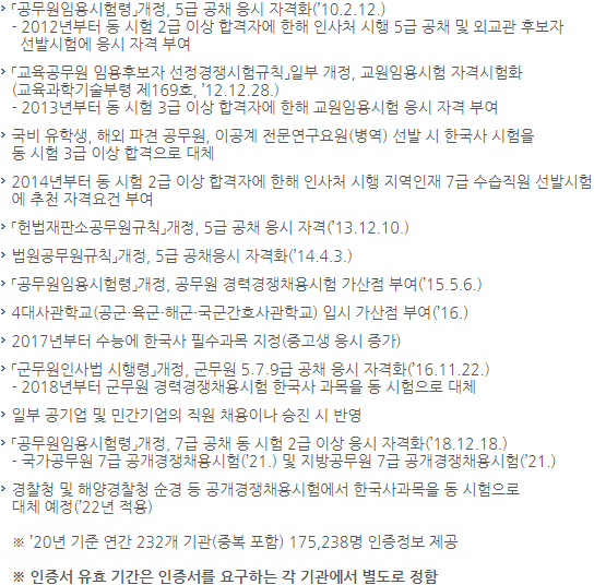 대표적으로 공무원, 군무원 시험에 있는 한국사 평가를