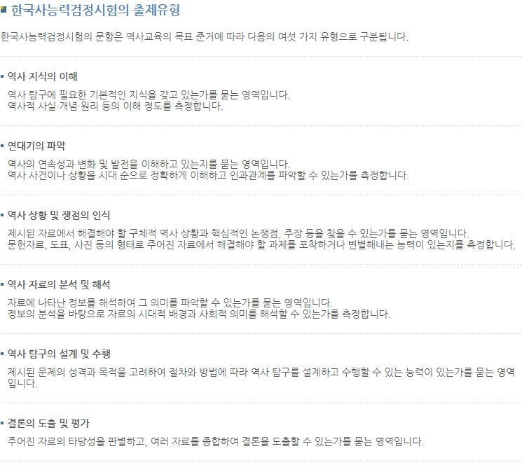 한능검의 출제유형은 위 내용을 기준으로 출제됩니다.